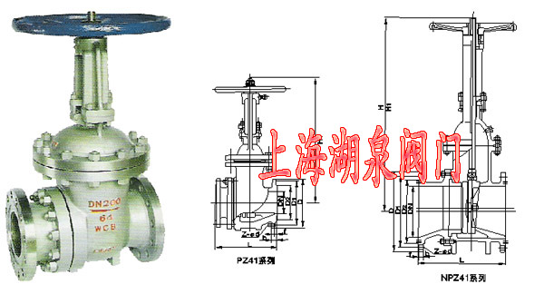 PZ41H 型 PN10~PN63 排渣閘閥:手動(dòng)、法蘭連接、明桿楔式剛性單閘板,閥座密封面材料為不銹鋼,公稱壓力 PN10~PN63,閥體材料為灰鑄鐵(PZ41H-10 PZ41H-16)、碳素鋼(PZ41H-10C~63)的排渣閘閥。